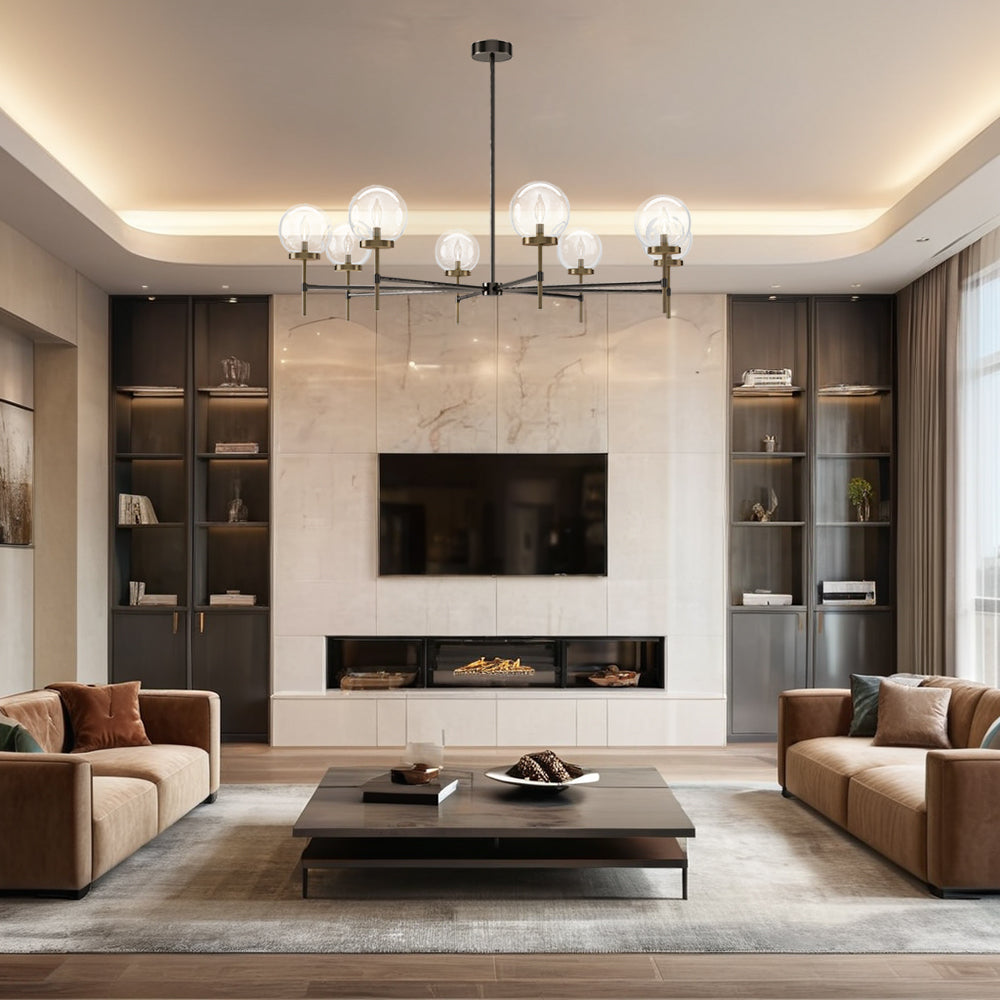 - Introducing the stunning Glass Globe Chandelier, a perfect addition to your dining room, sitting room, or living room ceiling.