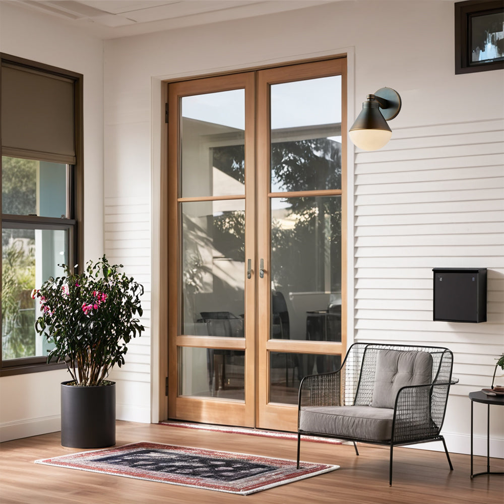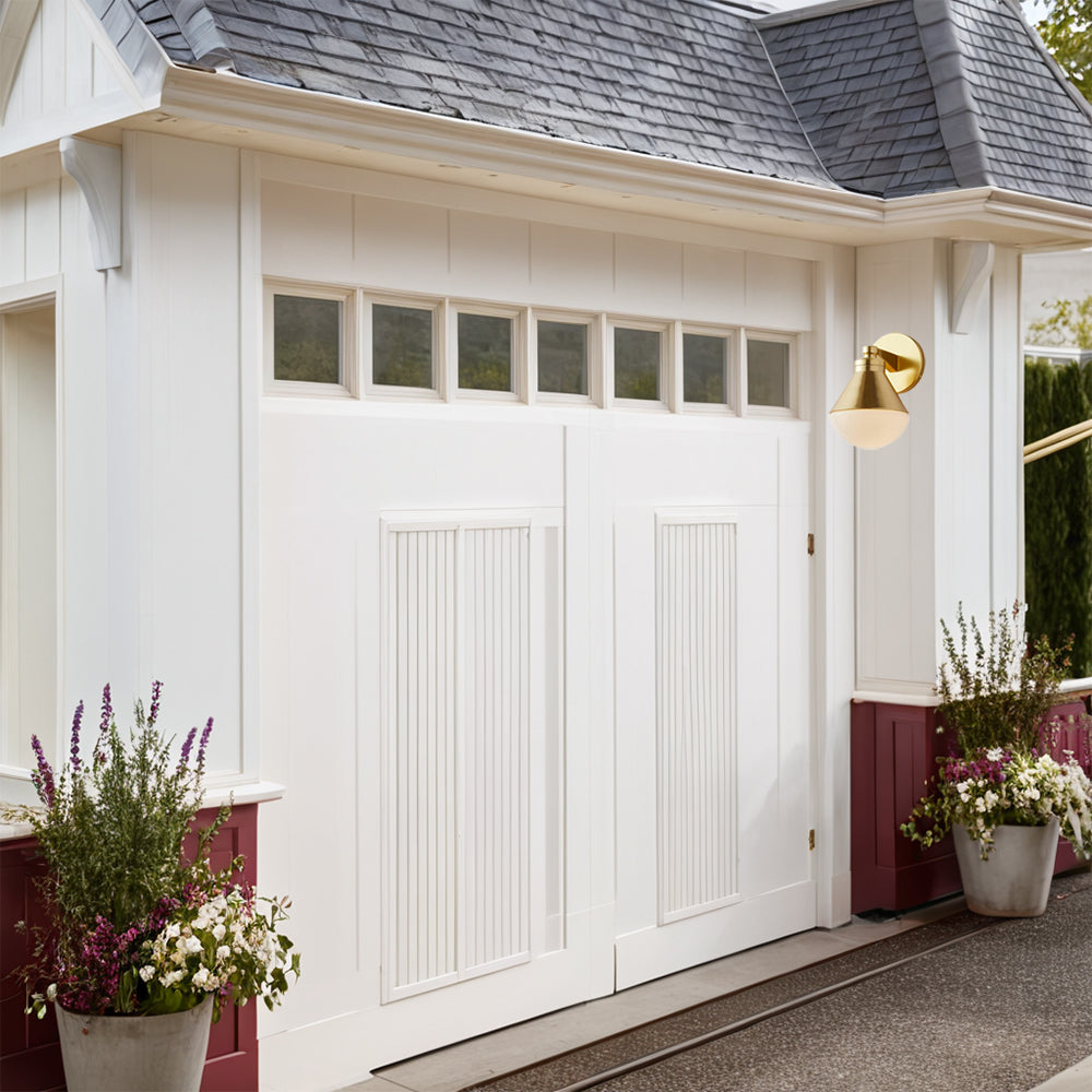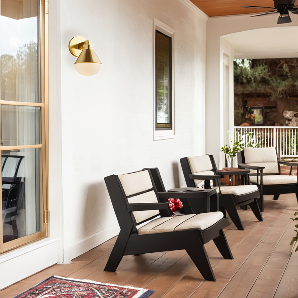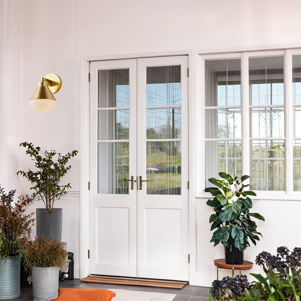 Outdoor Wall Lights - Minimalist Style Mlik Glass with Brass Fixture - French Industrial Geometric Design Wall Sconce for Bedroom, Living Room, and Outdoor Spaces