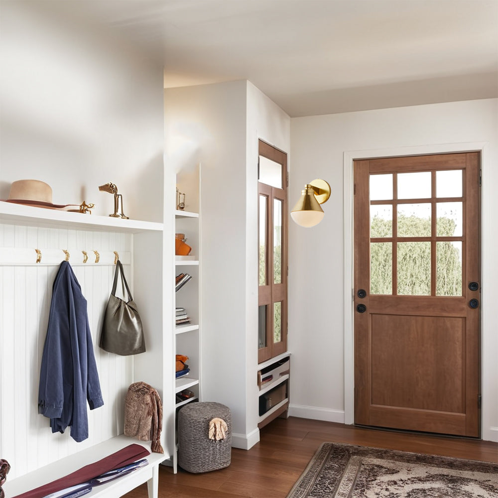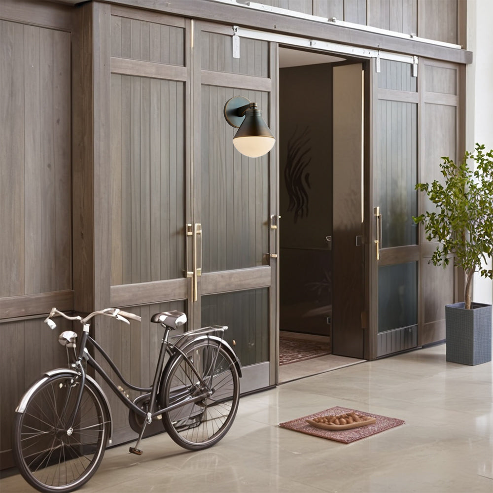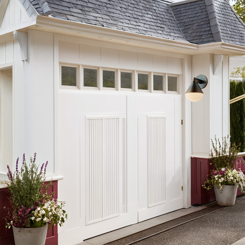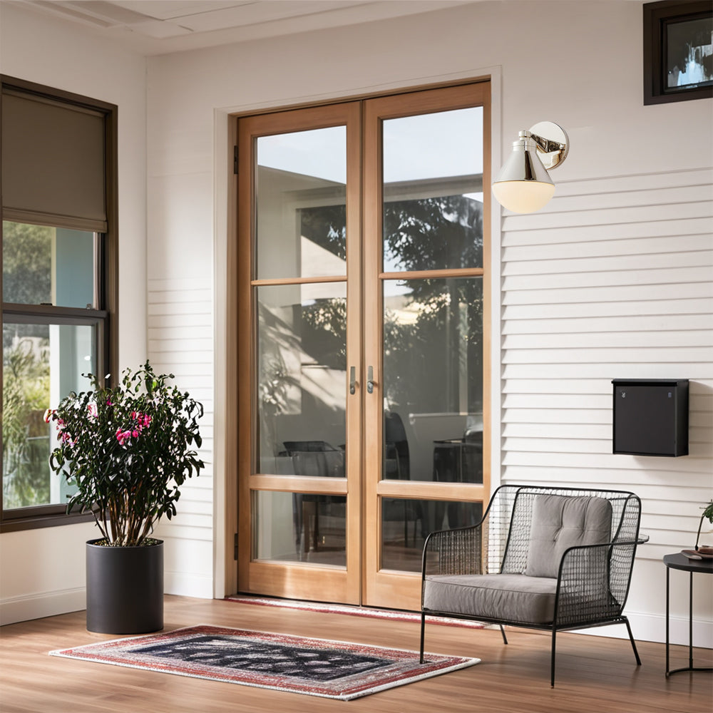 Outdoor Wall Lights - Minimalist Style Mlik Glass with Brass Fixture - French Industrial Geometric Design Wall Sconce for Bedroom, Living Room, and Outdoor Spaces
